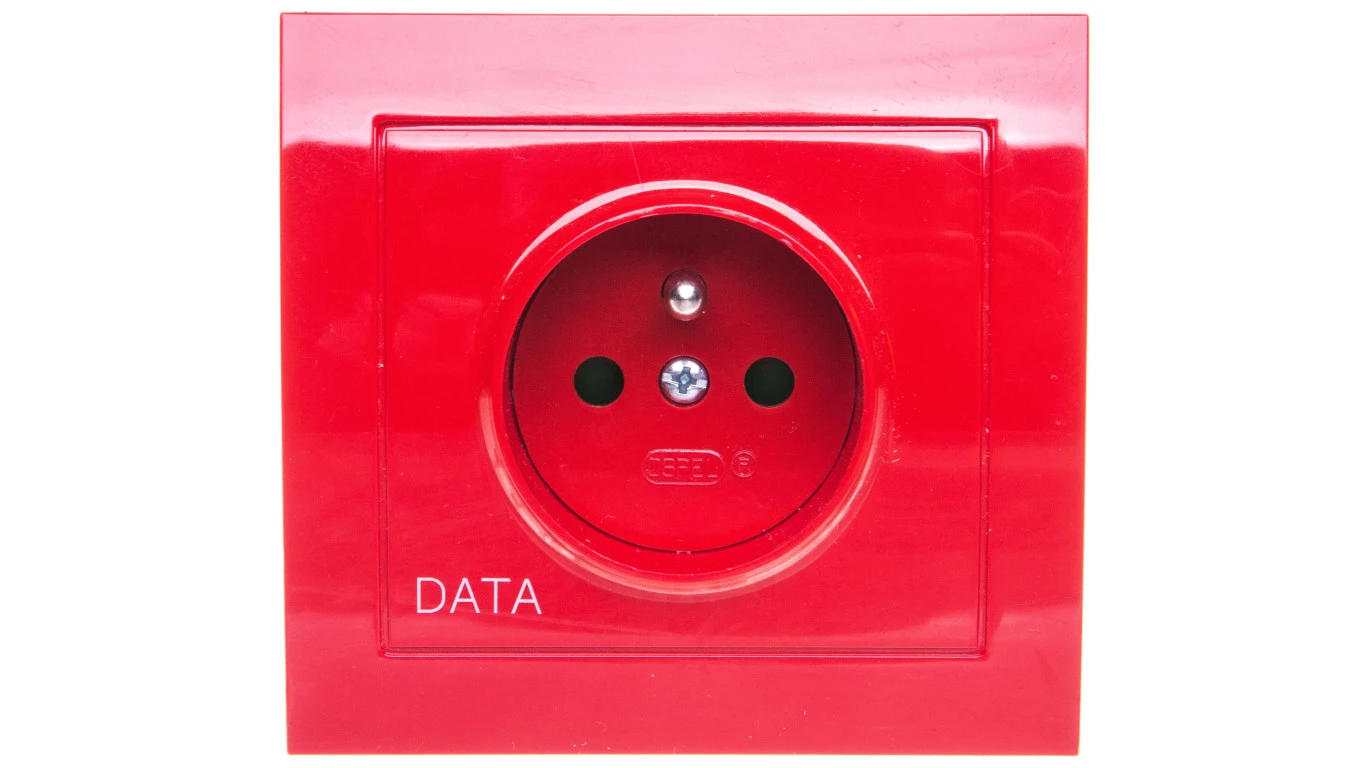 KIER Gniazdo pojedyncze z/u DATA z przesłonami czerwone GP-1WZDP/22