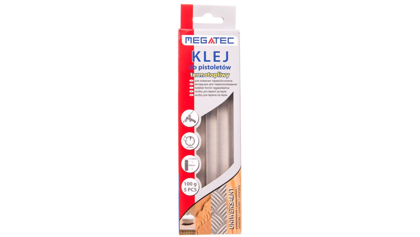 Klej termotopliwy uniwersalny bezbarwny średnica 11mm długość 200mm 100g blister BN1051