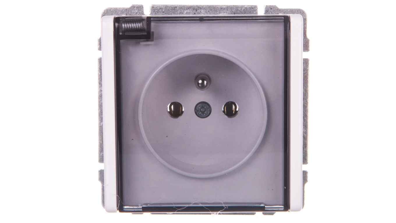 KOS66 Gniazdo bryzgoszczelne z/u IP44 z przesłonami klapka dymna białe 660440