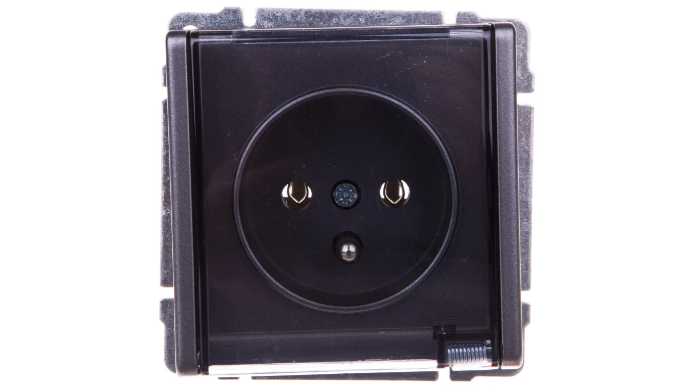 KOS66 Gniazdo bryzgoszczelne z/u IP44 z przesłonami klapka dymna grafit 666040