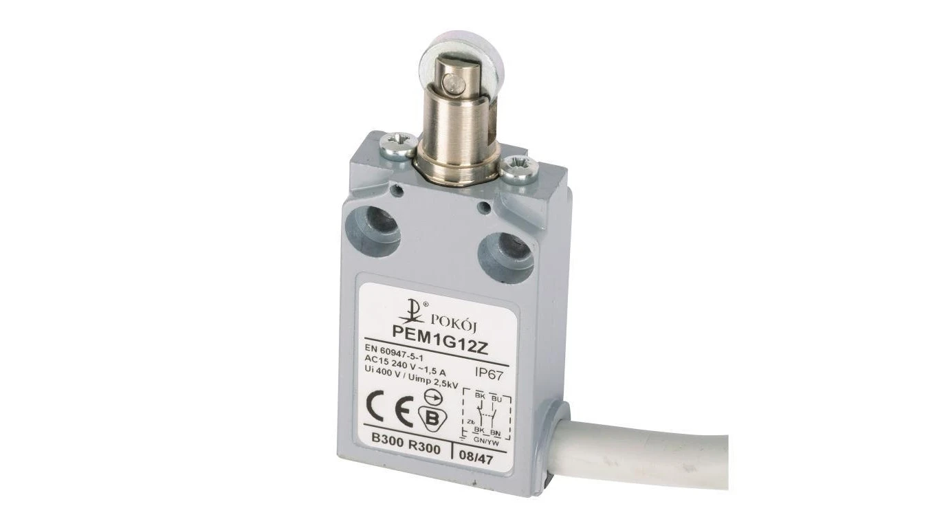 Łącznik krańcowy popychacz metalowy z rolką stalową równoległą Ø12 PEM1G12Z A37-A83Z