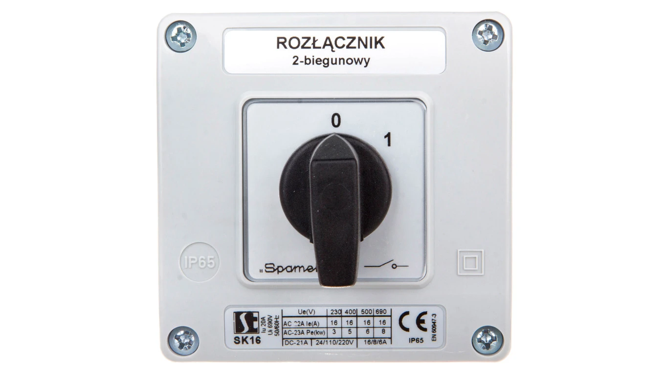 Łącznik krzywkowy 0-1 2P 16A w obudowie SK16-1.828OB11