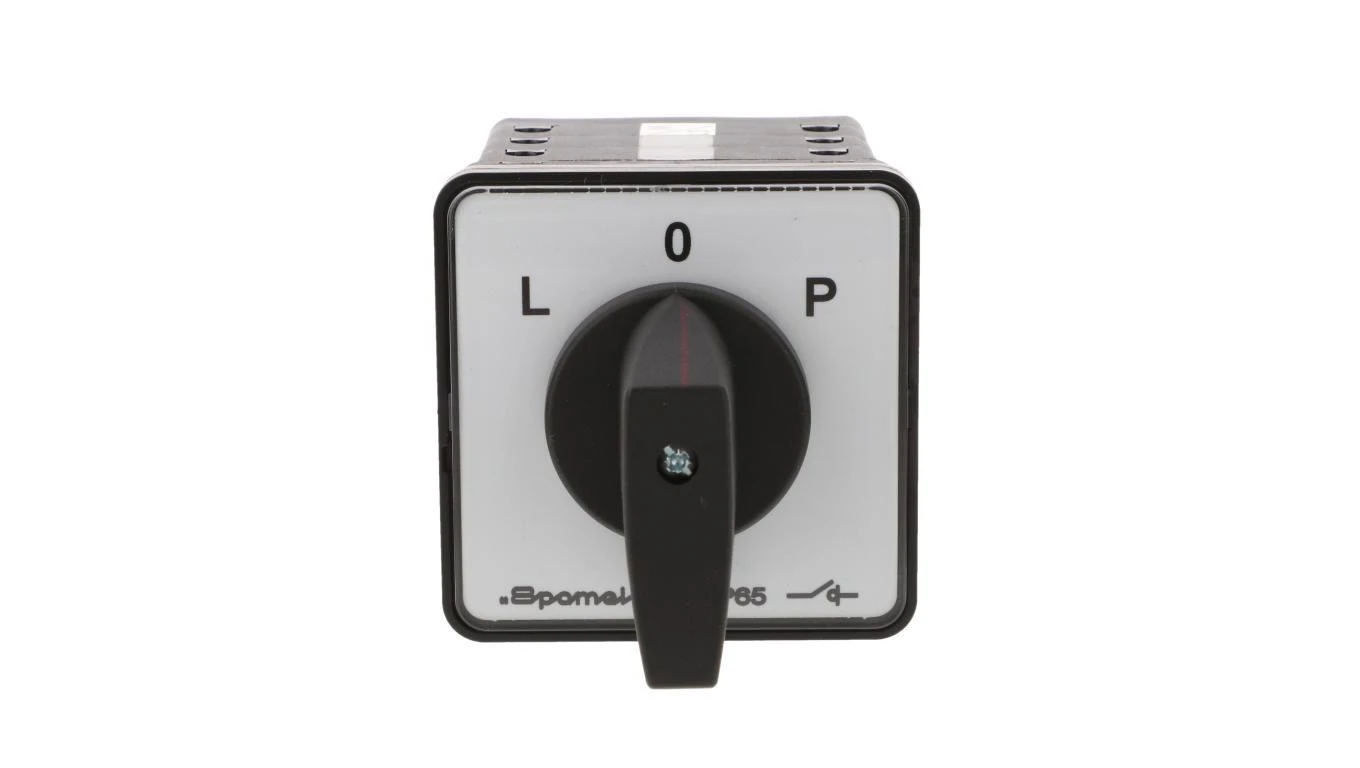Łącznik krzywkowy 80A przełącznik zmiany kierunku obrotów L-O-P mocowany do pulpitu czoło szare pokrętło czarne SK80-3.8368\P03