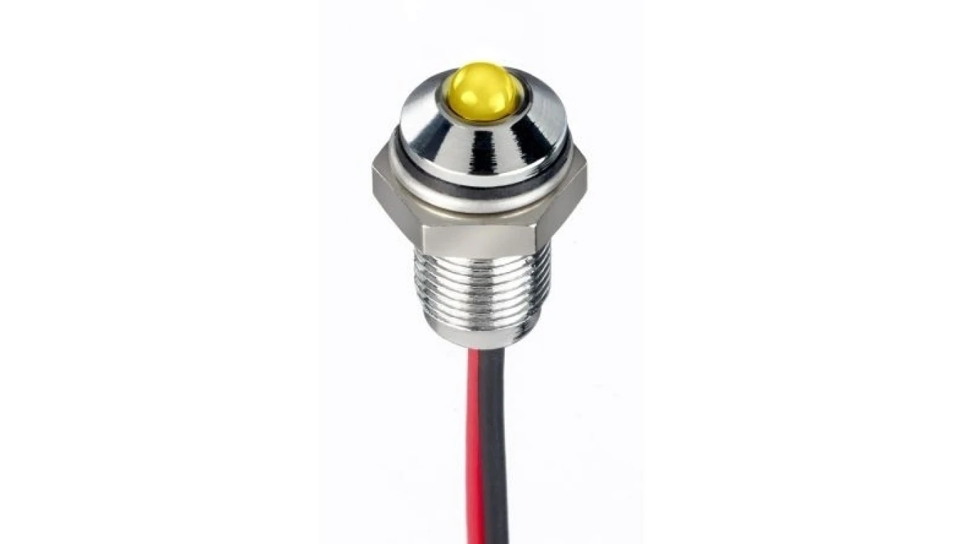 Lampka kontrolna do montażu panelowego 10.8 → 13.2V dc, Żółta 6mm LED Chrom Wyprowadzenia RS PRO