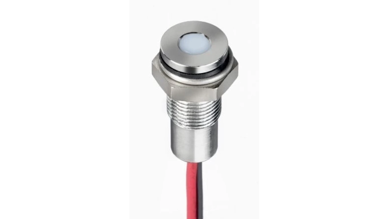 Lampka kontrolna do montażu panelowego 1.8 → 3.3V dc, biała 6mm LED Chrom Wyprowadzenia RS PRO