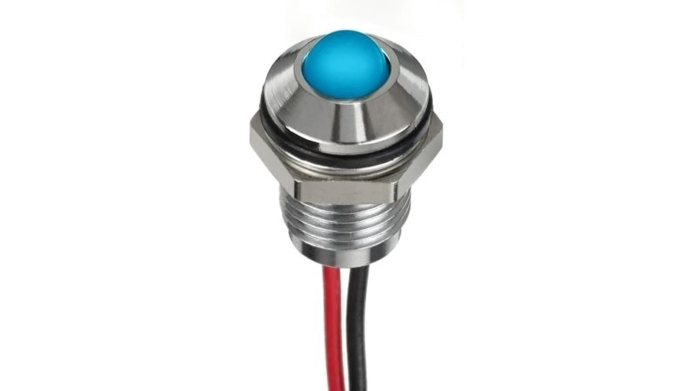 Lampka kontrolna do montażu panelowego 1.8 → 3.3V dc, niebieska 8mm LED Chrom Wyprowadzenia RS PRO