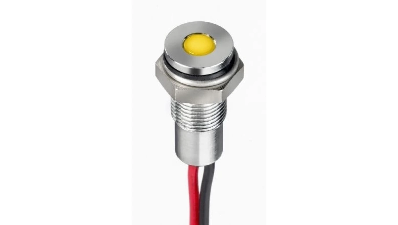 Lampka kontrolna do montażu panelowego 21.6 → 26.4V dc, Żółta 6mm LED Chrom Wyprowadzenia RS PRO
