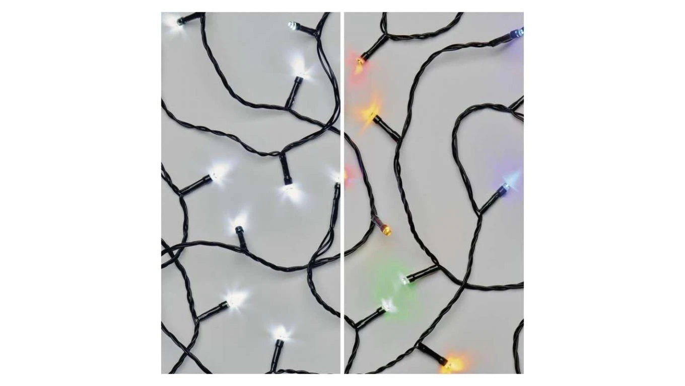 Lampki choinkowe 100LED 10m, 2 w 1 zimna biel lub multikolor, czarny, 8 programów, IP44 D4AJ01