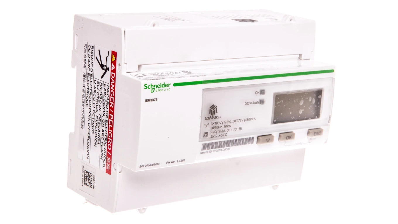Licznik energii elektrycznej 1/3-fazowy 125A 100-277/173-480V kl.1/B LON MID taryfowy cyfrowy modułowy A9MEM3375
