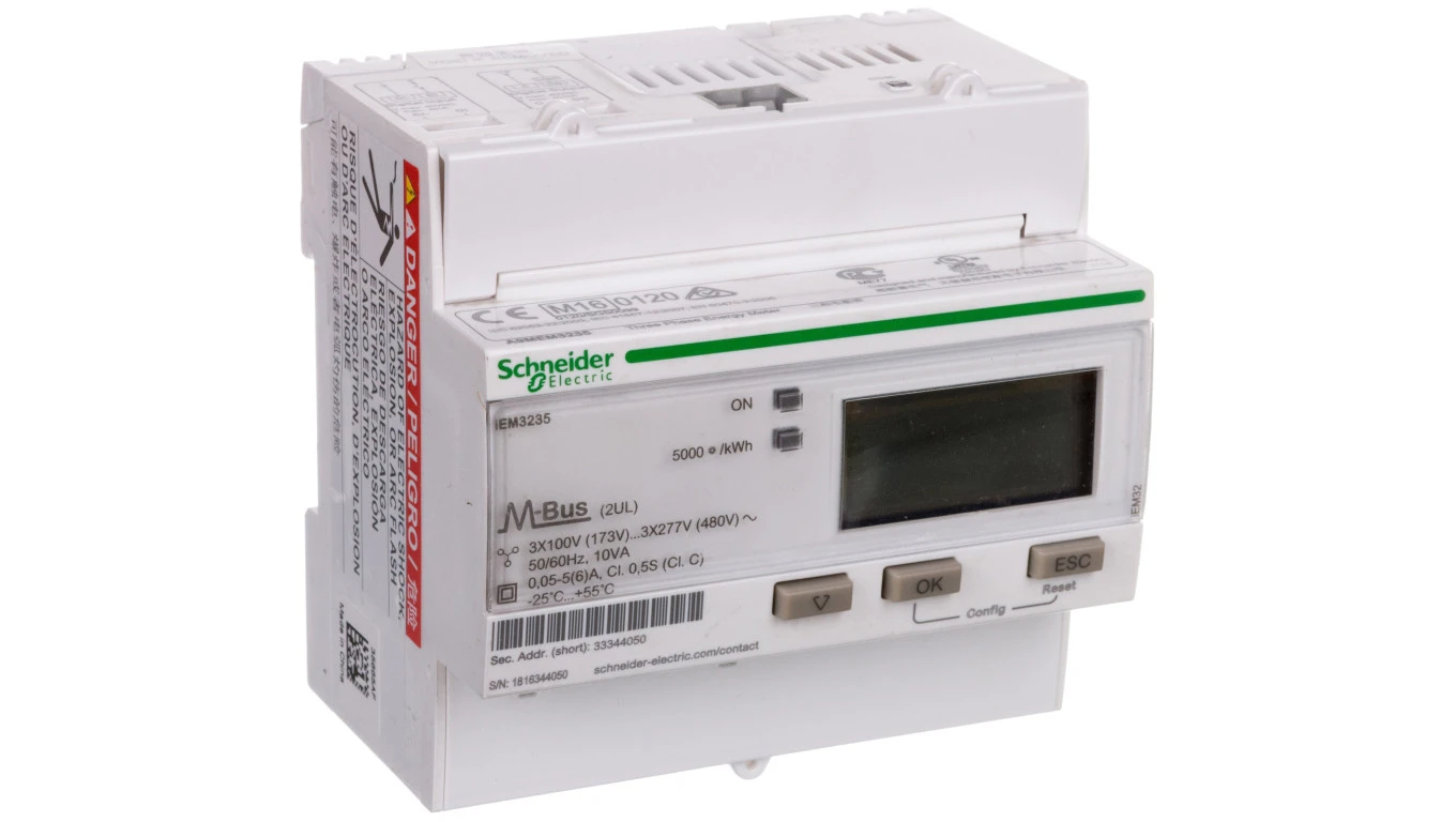 Licznik energii elektrycznej 1/3-fazowy 5A przekładnik 100-277/173-480V kl.0,5S/C M-Bus MID taryfowy cyfrowy iEM3235 A9MEM3235