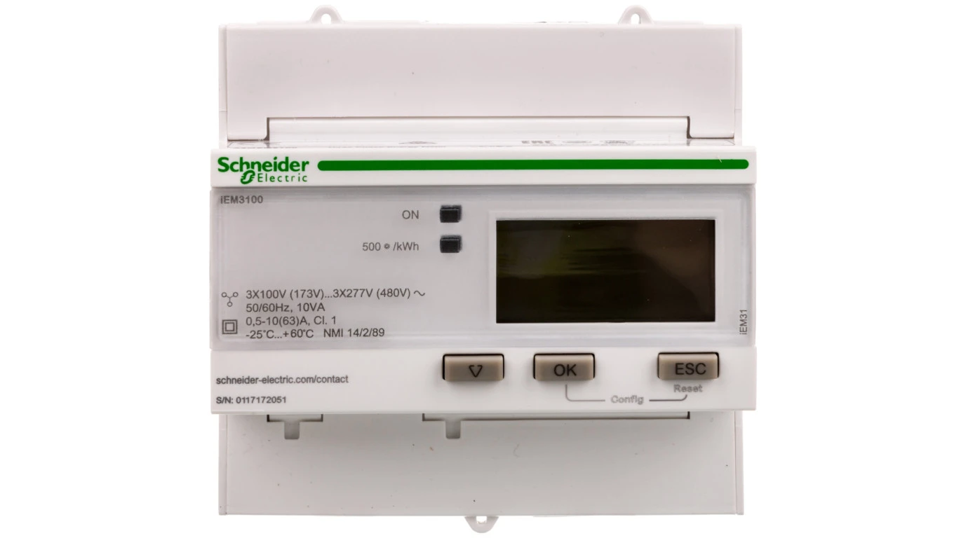 Licznik energii elektrycznej 1/3-fazowy 63A 100-277/173-480V kl.1 cyfrowy modułowy iEM3100 A9MEM3100