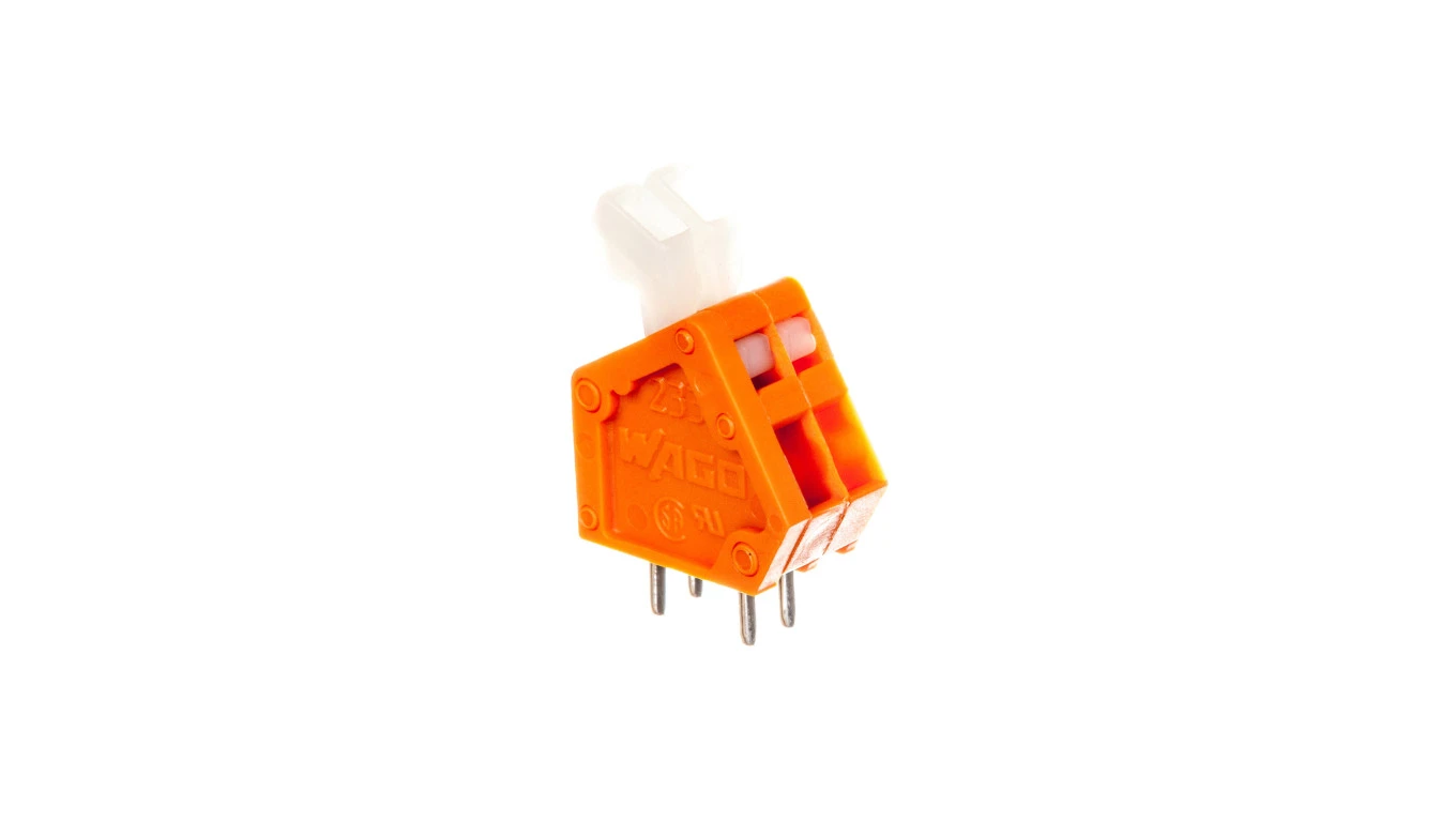 Listwa zaciskowa do płytek drukowanych 2-torowa 2 piny/biegun raster 2,54mm z przyciskami pomarańczowa 233-502 /100szt./