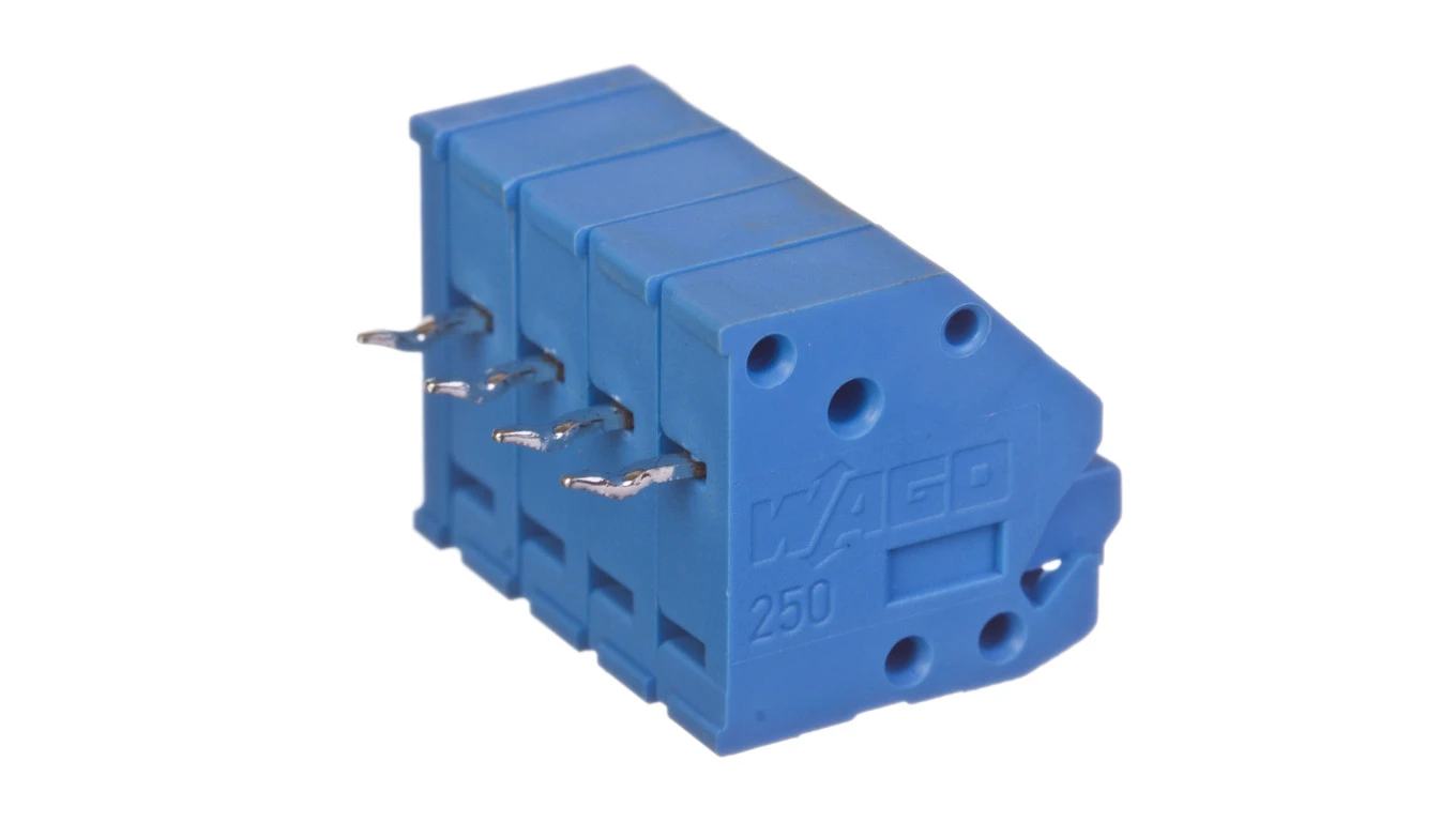 Listwa zaciskowa do płytek drukowanych 4-torowa z przyciskami i otworem pomiarowym do 1,3mm niebieska 250-104/000-006 /75szt./