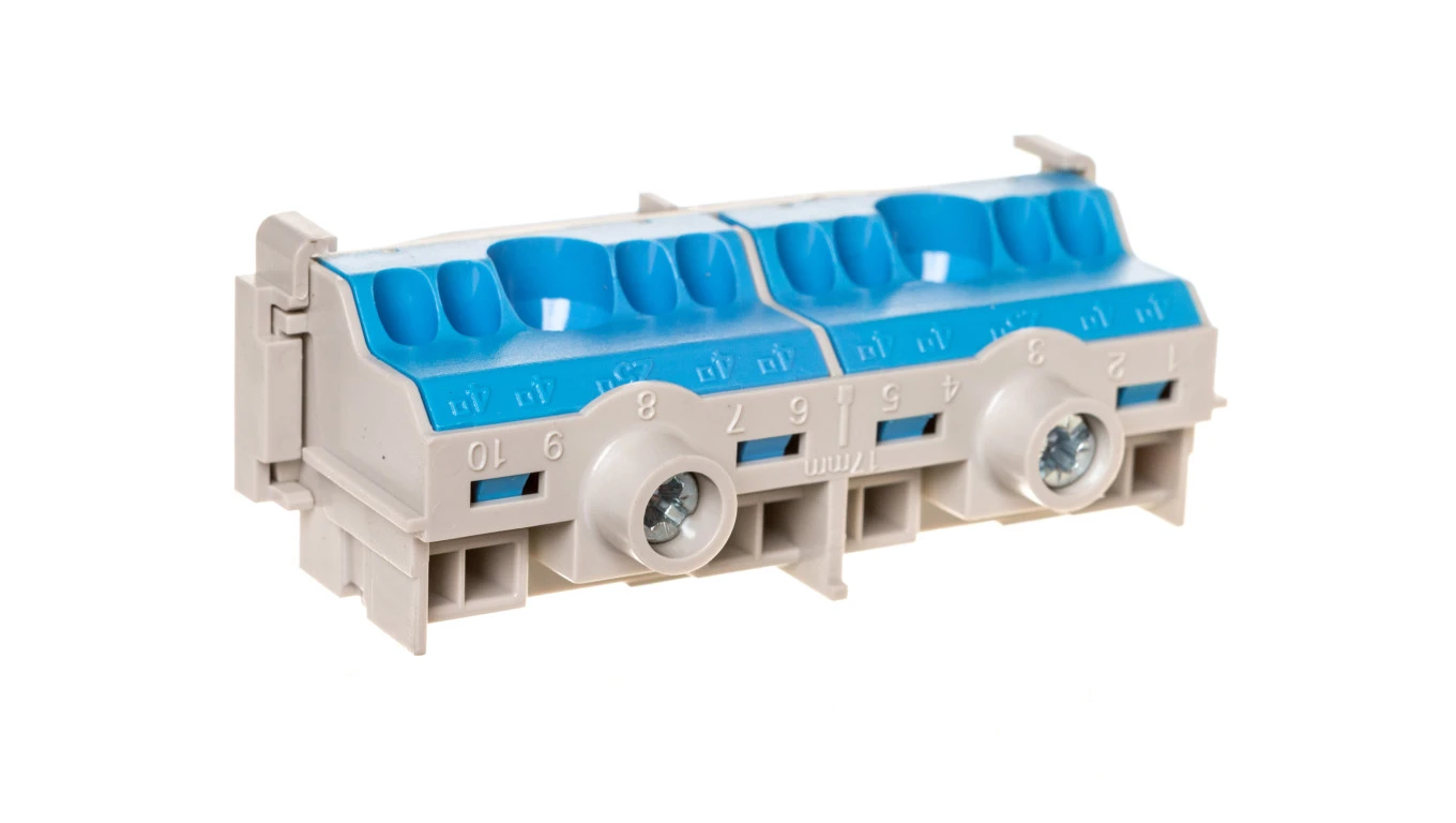 Listwa zaciskowa N na szynę 80A 2x25mm2 + 8x4 mm2 Cu niebiesko-szara FC N 10 26001204