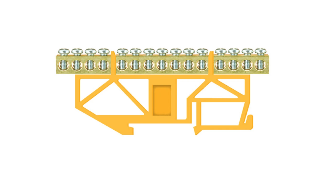 Listwa zaciskowa wysoka na szynę 15-torowa żółta TH35 E.4057