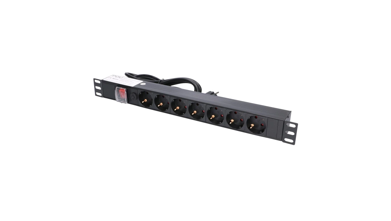 Listwa zasilająca 19 1U, 7 gniazd EU, z wyłącznikiem, 2m Extralink EXPDU7EU SW