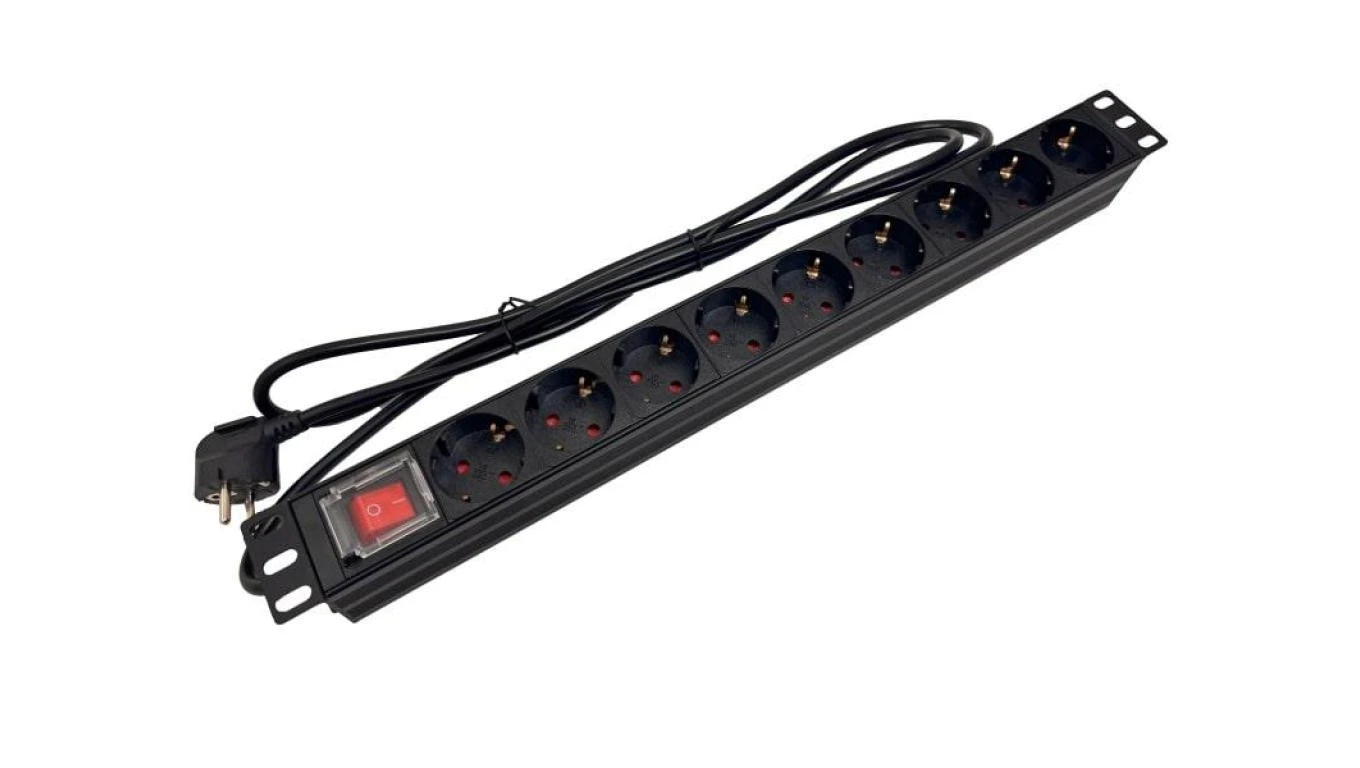 Listwa zasilająca rack 19 cali PDU gniazdo 9 x CEE 7/3 schuko wtyk CEE 7/7 z wyłącznikiem