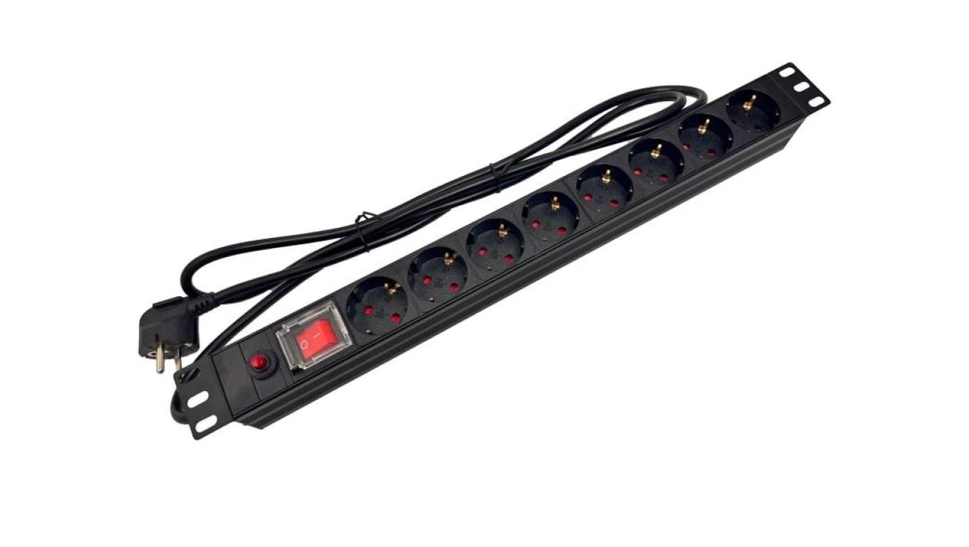 Listwa zasilająca rack 19 cali PDU gniazdo 9 x CEE 7/3 wtyk CEE 7/7 z wyłącznikiem i zabezpieczeniem