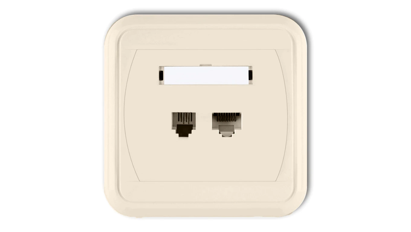 LIZA Gniazdo telefoniczne pojedyncze 1xRJ11, 4-stykowe + gniazdo komputerowe pojedyncze 1xRJ45, kat. 5e, 8-stykowe beżowy 1GLTK