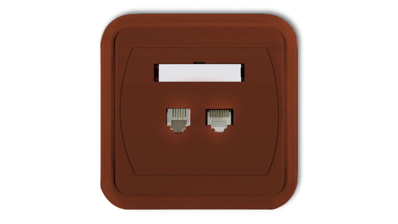 LIZA Gniazdo telefoniczne pojedyncze 1xRJ11, 4-stykowe + gniazdo komputerowe pojedyncze 1xRJ45, kat. 5e, 8-stykowe brązowy 4GLTK