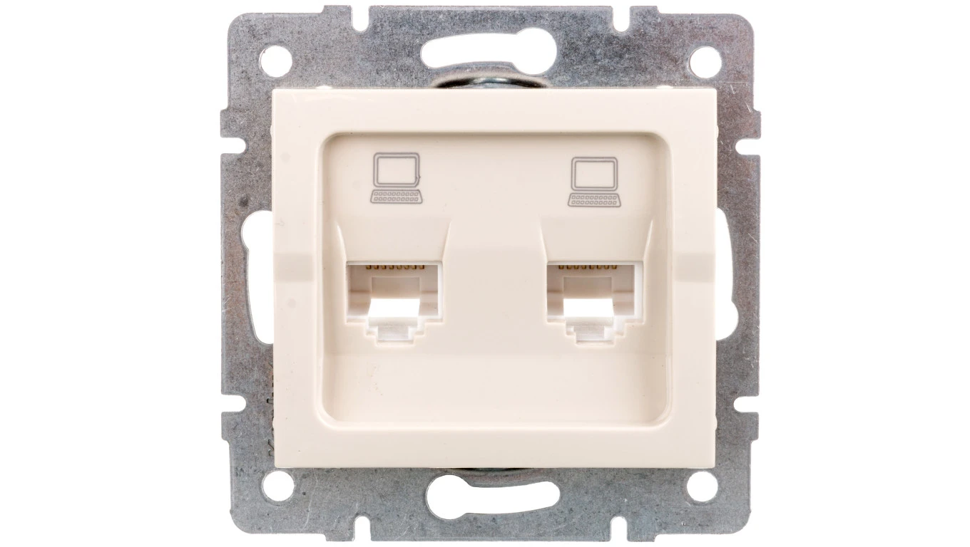 LOGI Gniazdo komputerowe (2xRJ45Cat 5e Jack) niezależne Kremowy 25169