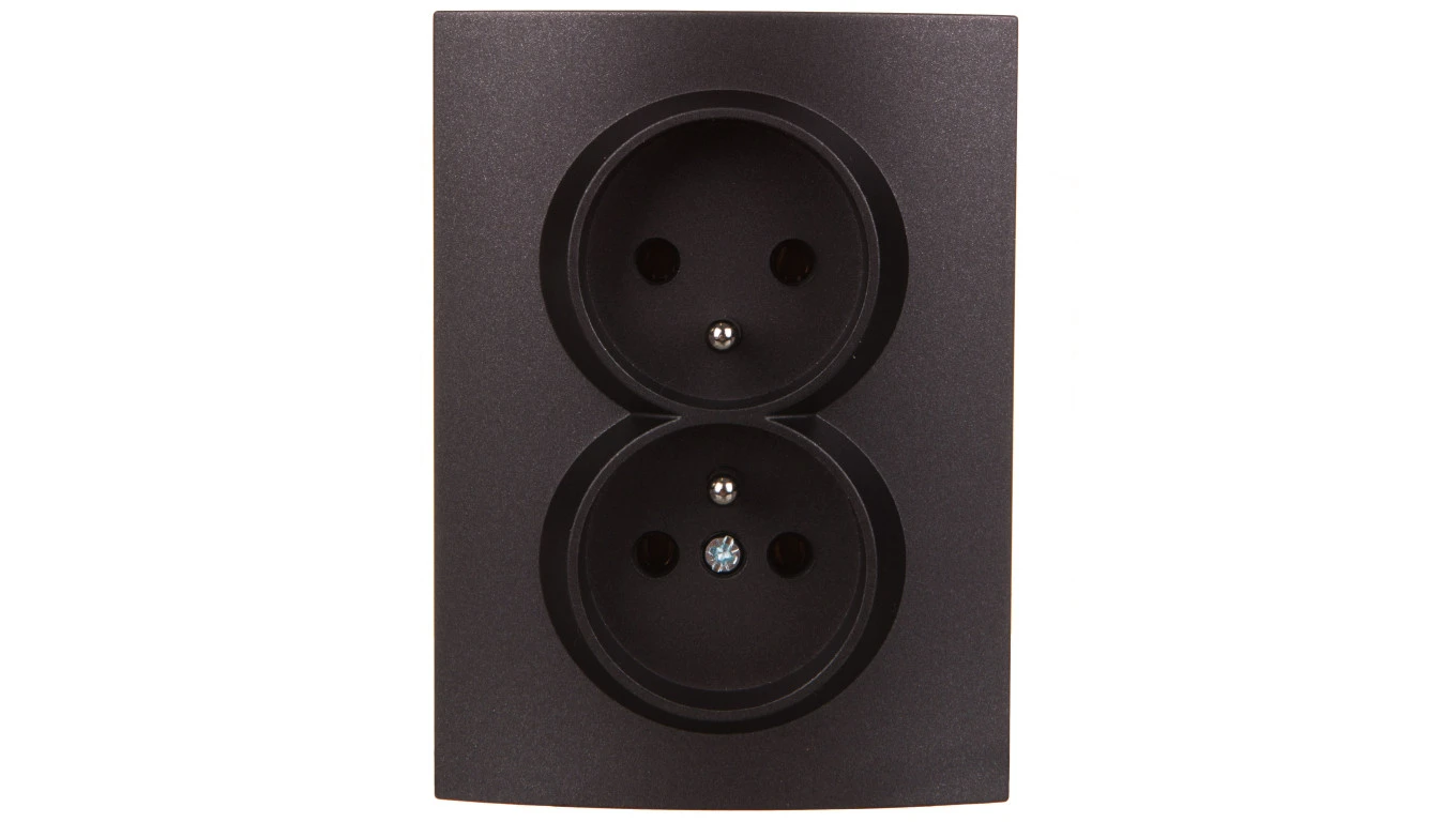 LOGI Gniazdo podwójne 2x2P kompletne śrubowe 16A 250V Grafit 25271