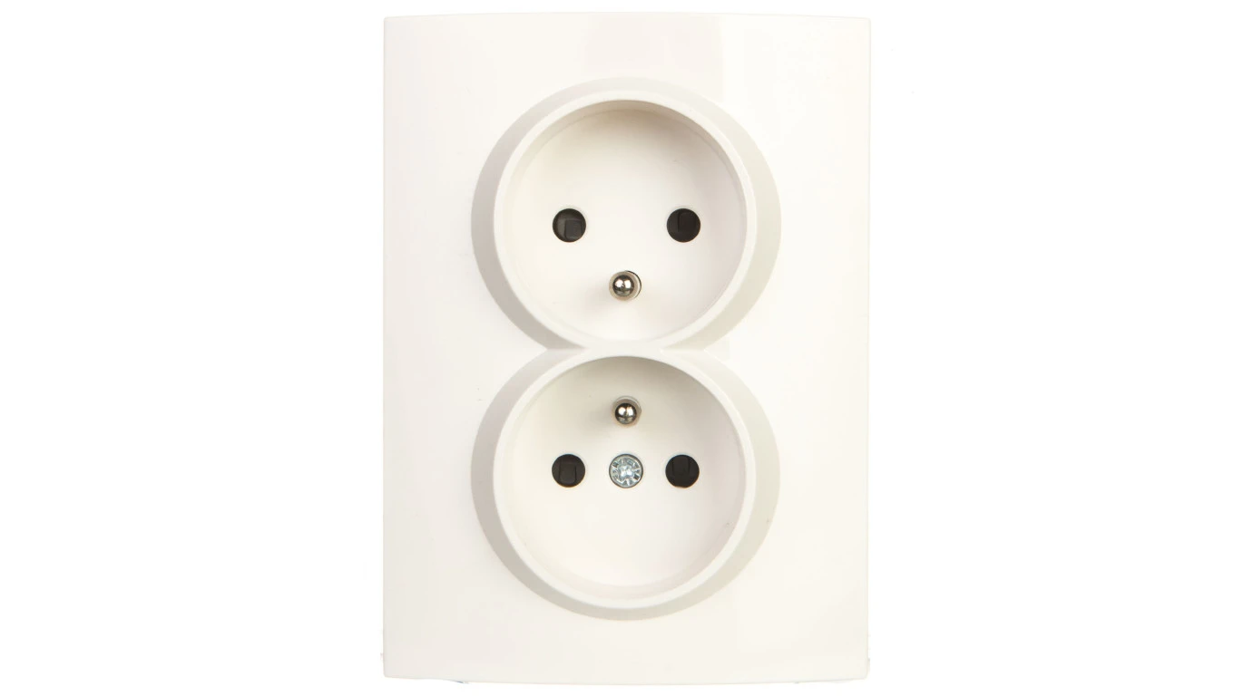 LOGI Gniazdo podwójne 2x2P+Z kompletne z przesłoną styków śrubowe 16A 250V Biały 25093
