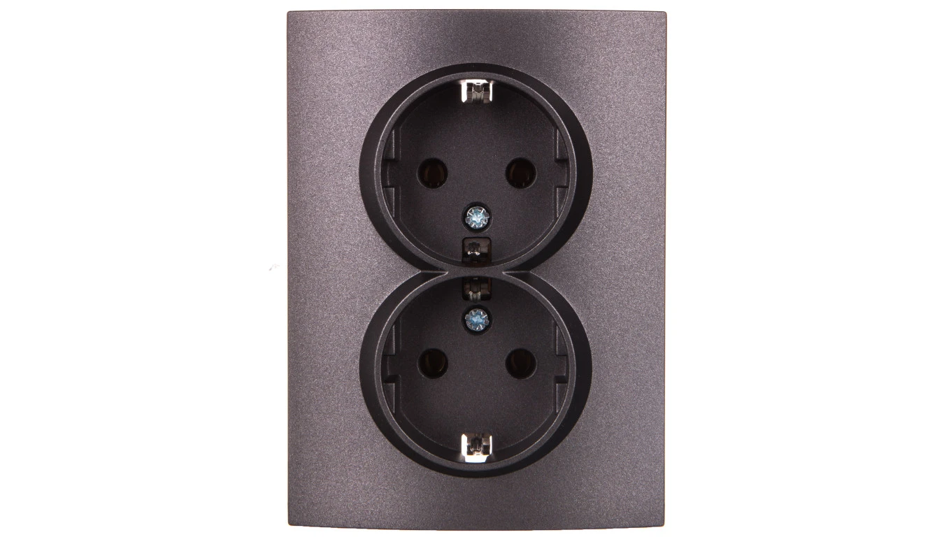 LOGI Gniazdo podwójne 2x2P+Z Schuko kompletne śrubowe 16A 250V Grafit 25272