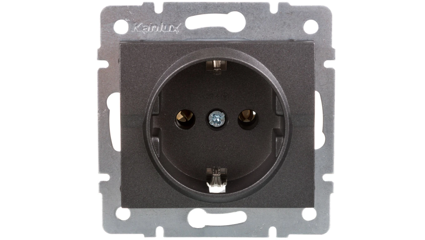 LOGI Gniazdo pojedyncze 2P+Z Schuko śrubowe16A 250V Grafit 25263