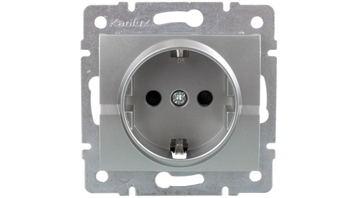 LOGI Gniazdo pojedyncze 2P+Z Schuko z przesłoną styków śrubowe 16A 250V Srebrny 25207