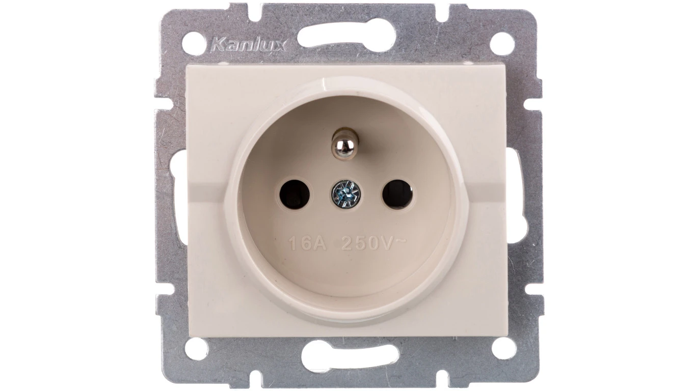 LOGI Gniazdo pojedyncze 2P+Z z przesłoną styków śrubowe 16A 250V Kremowy 25149
