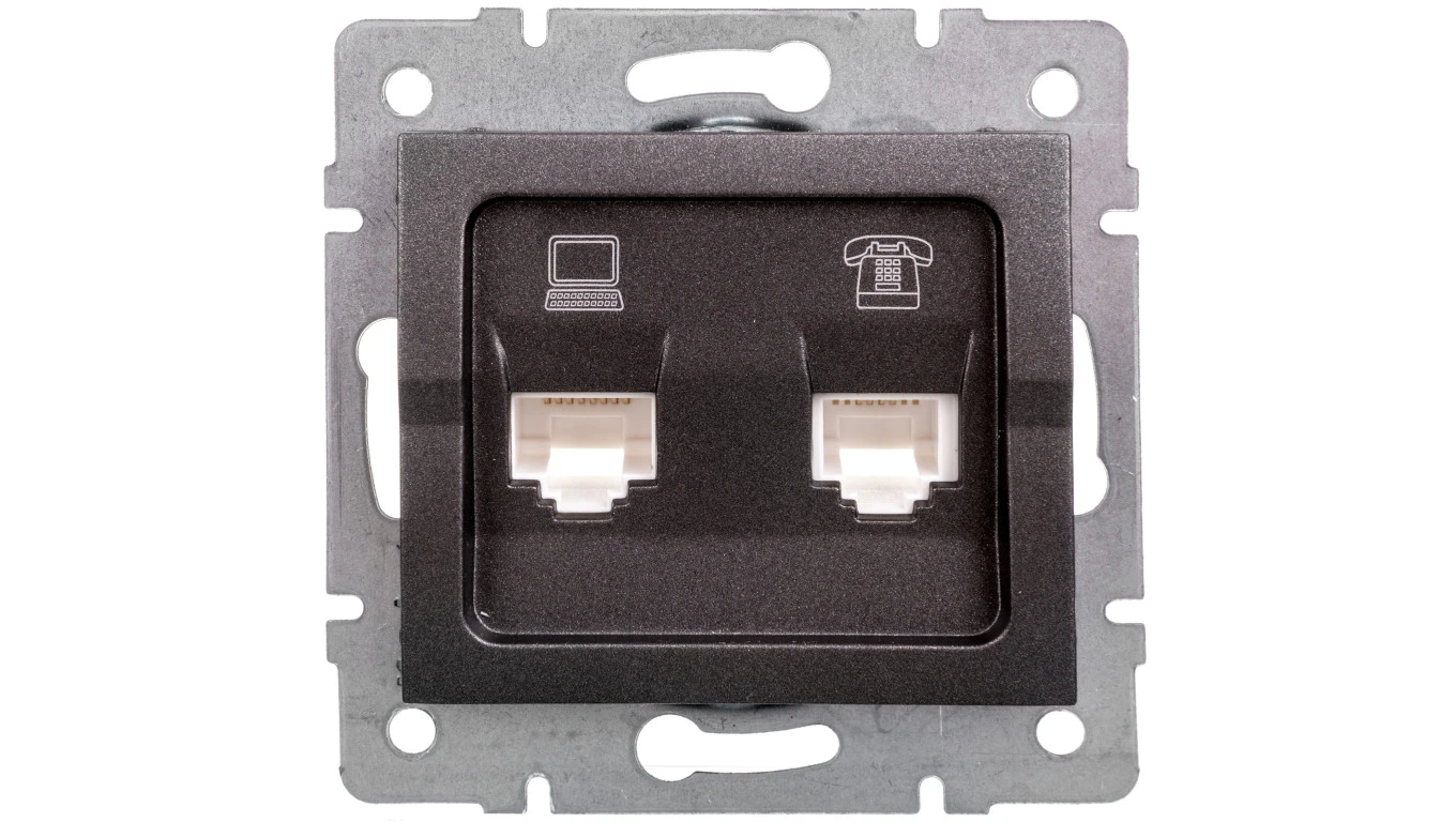 LOGI Gniazdo teleinformatyczne (RJ45 Cat 5e+RJ11) Grafit 25289
