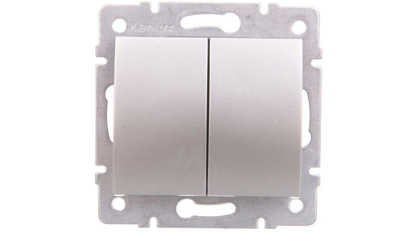 LOGI Łącznik dwugrupowy świecznikowy śrubowy 10AX 250V srebrny 021010143 25185