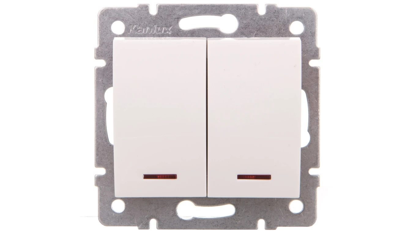 LOGI Łącznik dwugrupowy świecznikowy z LED śrubowy 10AX 250V biały 021120102 25079