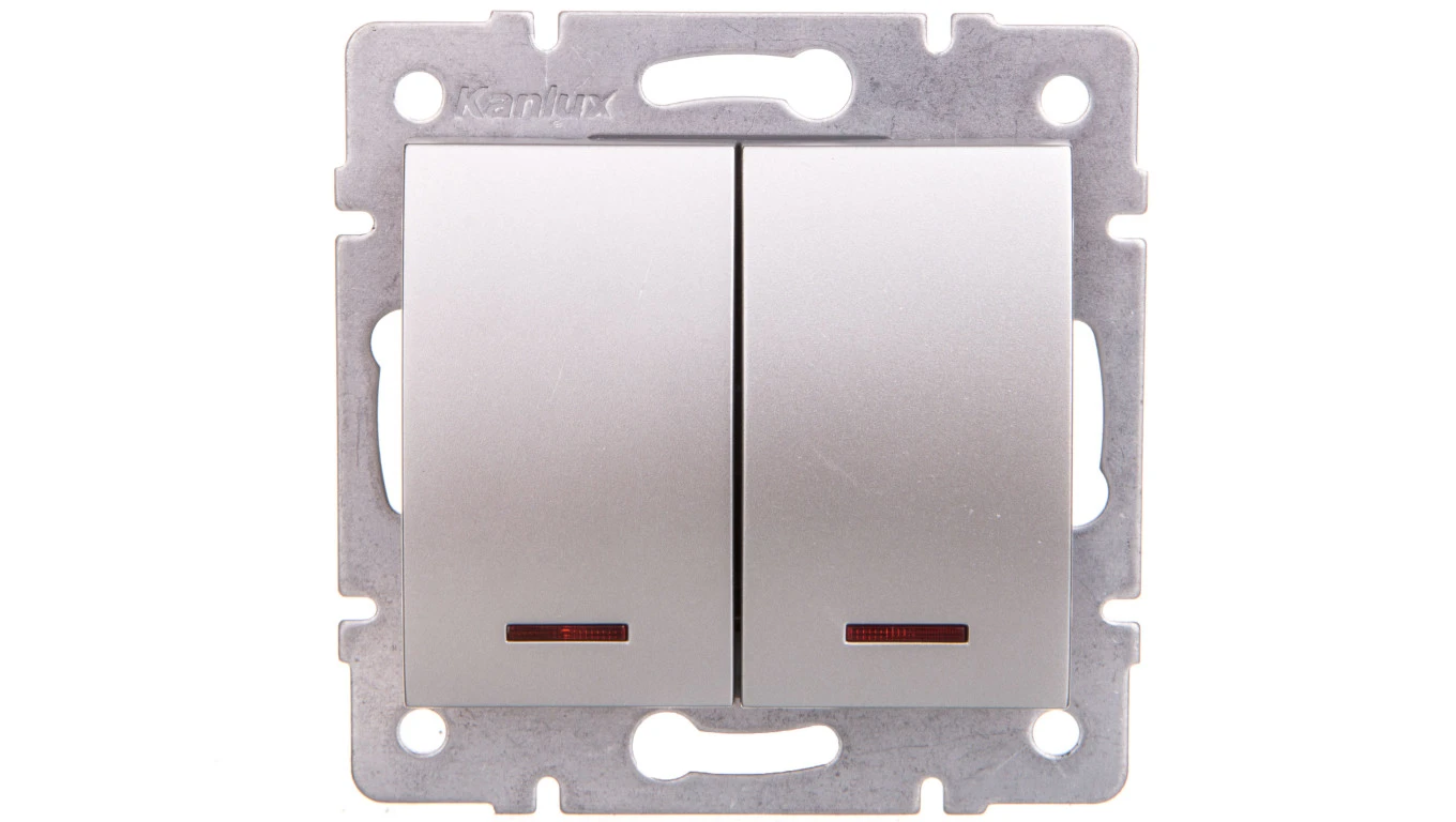 LOGI Łącznik dwugrupowy świecznikowy z LED śrubowy 10AX 250V srebrny 021120143 25198