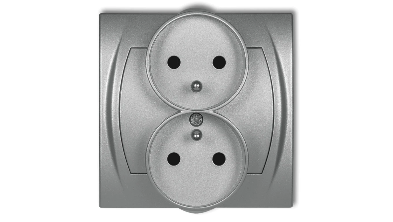 LOGO Gniazdo podwójne z/u z przesłonami srebrny metalik 7LGPR-2zp