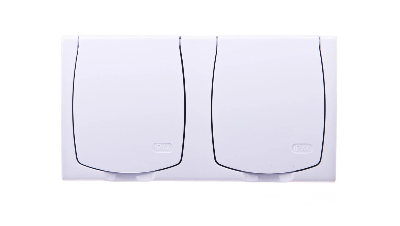 MADERA Gniazdo hermetyczne podwójne z/u IP44 z przesłonami klapka biała GNH-2NZP/00/w
