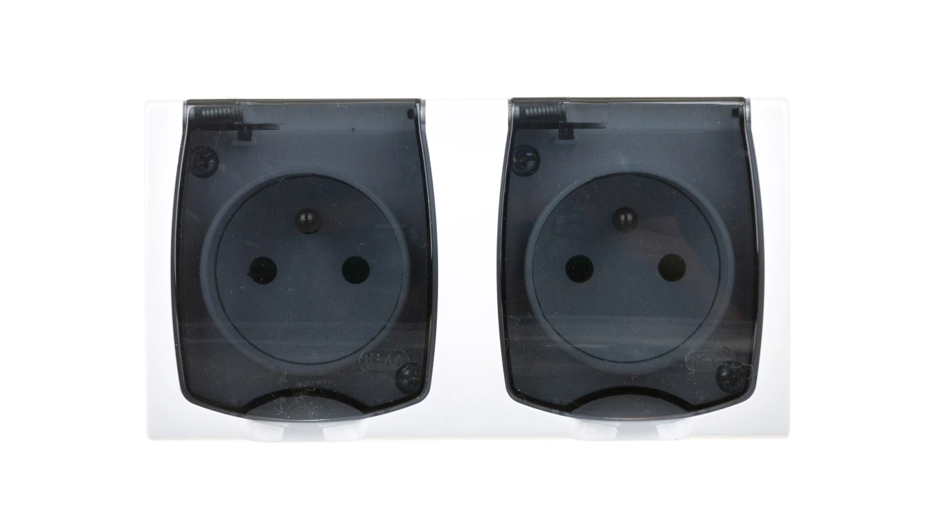 MADERA Gniazdo hermetyczne podwójne z/u IP44 z przesłonami klapka przezroczysta białe GNH-2NZP/00/d