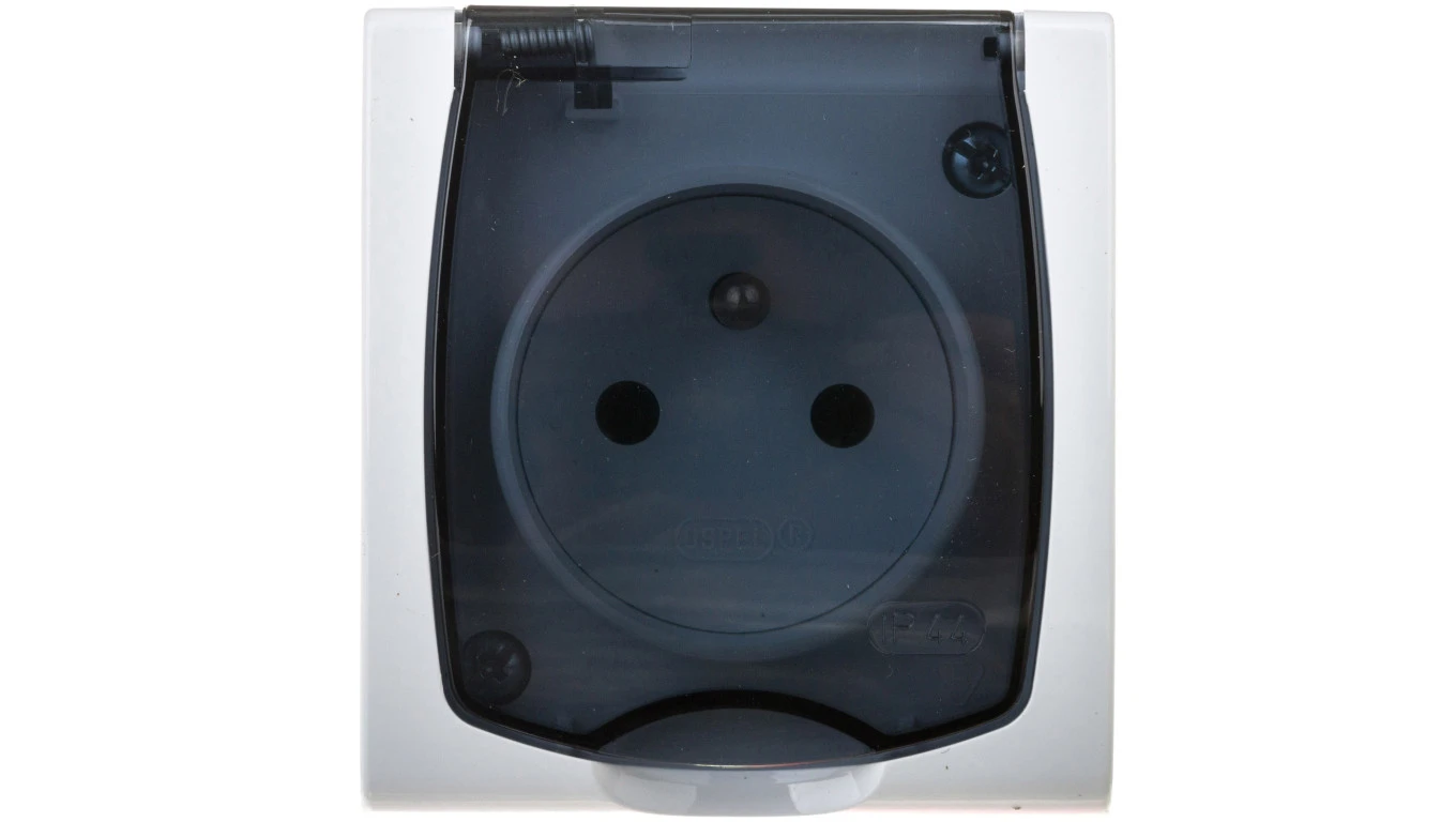 MADERA Gniazdo hermetyczne pojedyncze z/u IP44 klapka przezroczysta biała GNH-1NZ/00/d