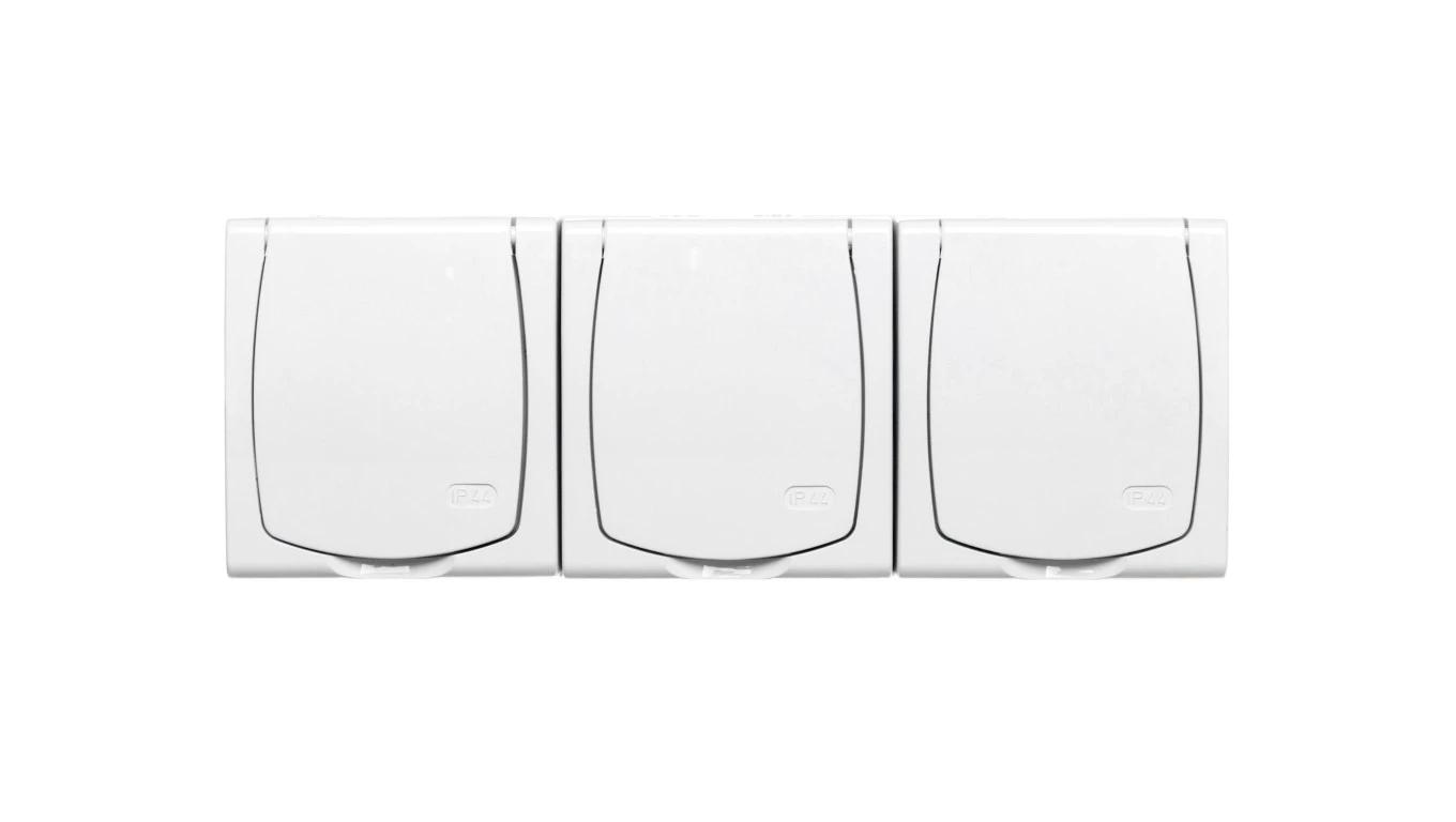 MADERA Gniazdo hermetyczne potrójne z/u IP44 klapka biała GNH-3NZ/00/w