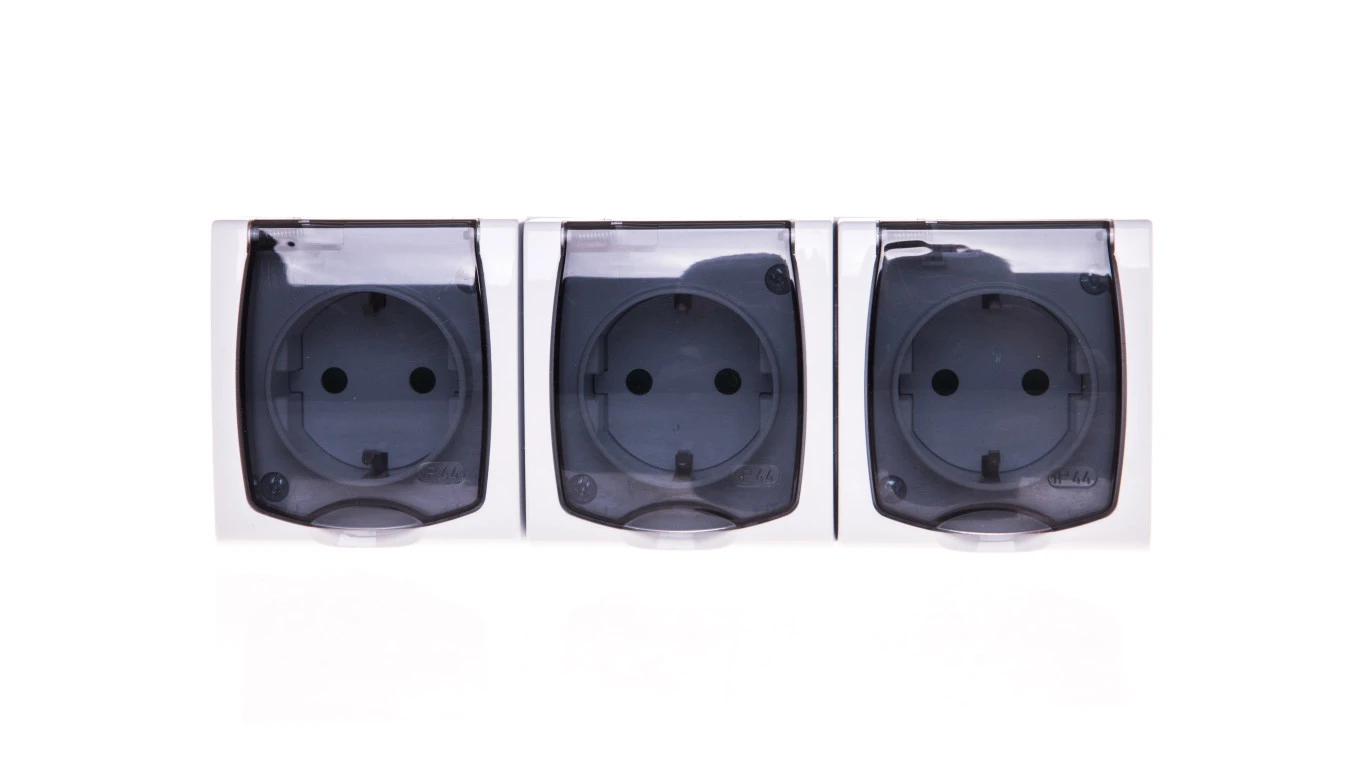 MADERA Gniazdo hermetyczne potrójne z/u Schuko IP44 z przesłonami klapka przezroczysta białe GNH-3NSP/00/d