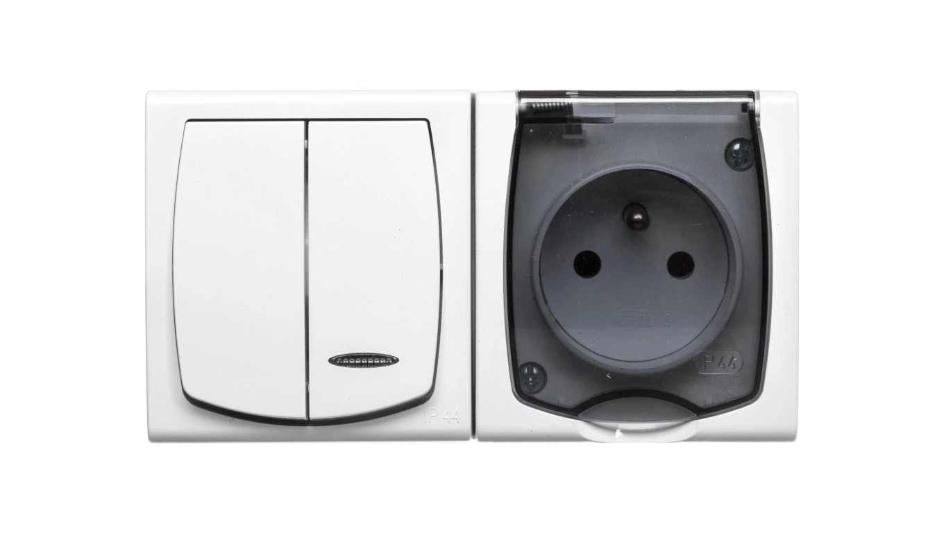 MADERA Łącznik hermetyczny świecznikowy z podświetleniem + gniazdo pojedyncze z/u z klapką przezroczystą biały ZH-NŁ2SG/00/d