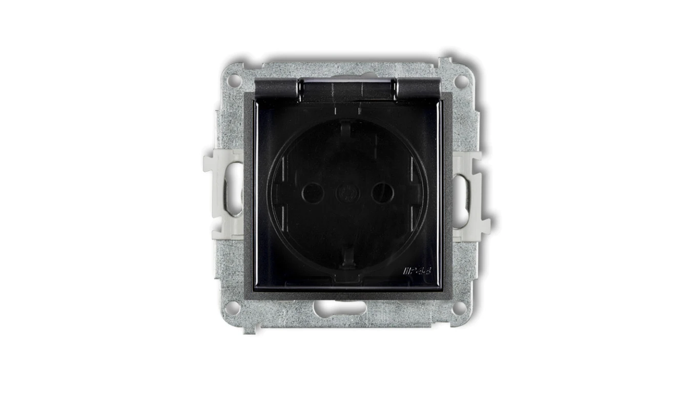 Mechanizm gniazda bryzgoszczelnego z uziemieniem SCHUKO 2P+Z (klapka dymna, przesłony torów prądowych) 11MGPB-1sdp