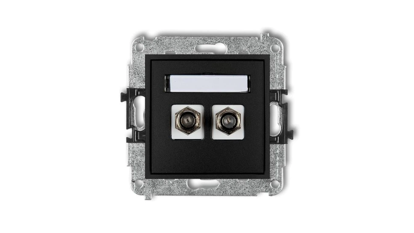 MINI Gniazdo antenowe podwójne typu F (SAT) niklowany czarny mat 12MGF-2