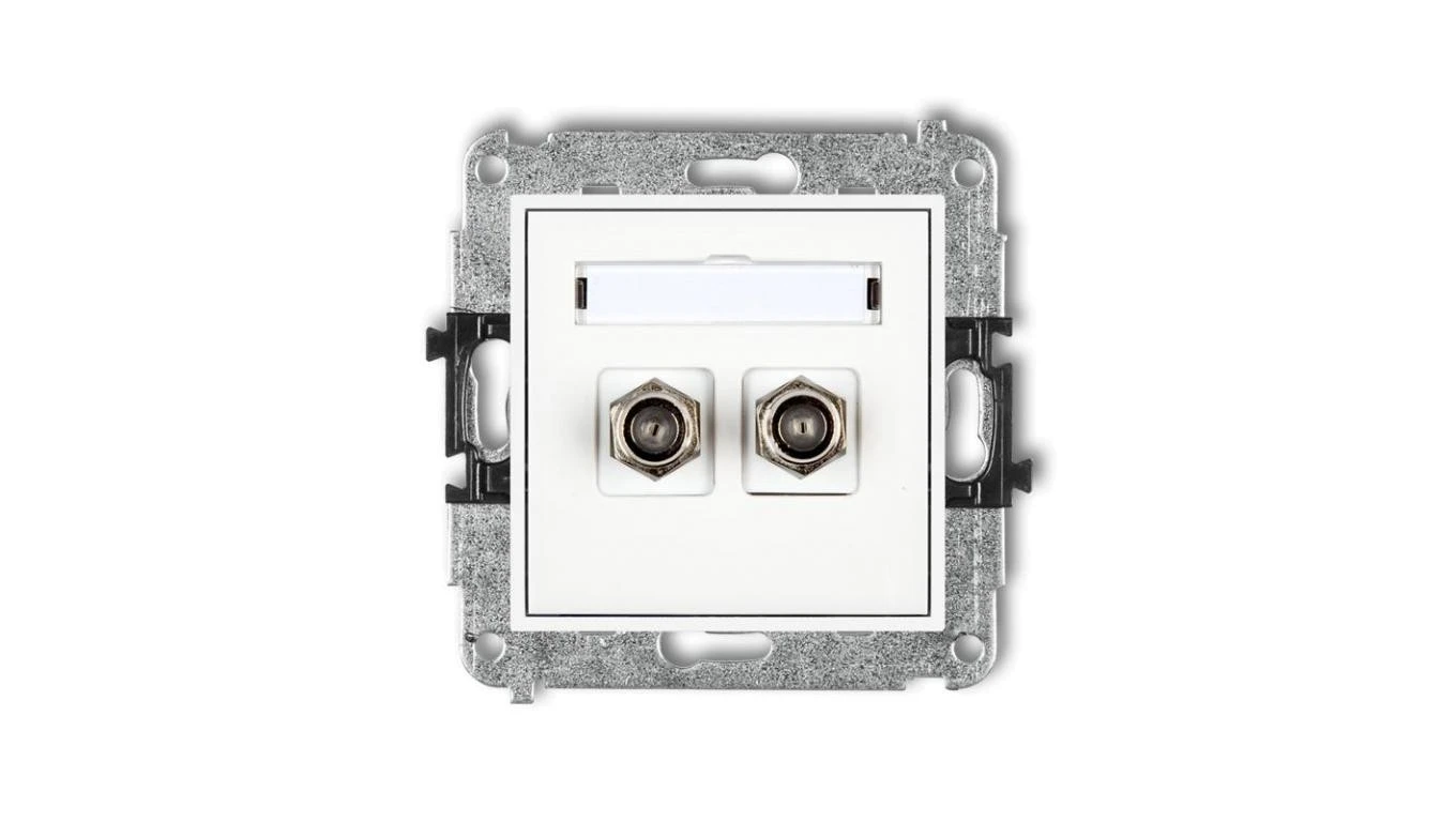 MINI Gniazdo antenowe podwójne typu F (SAT) pozłacany biały MGF-2.1