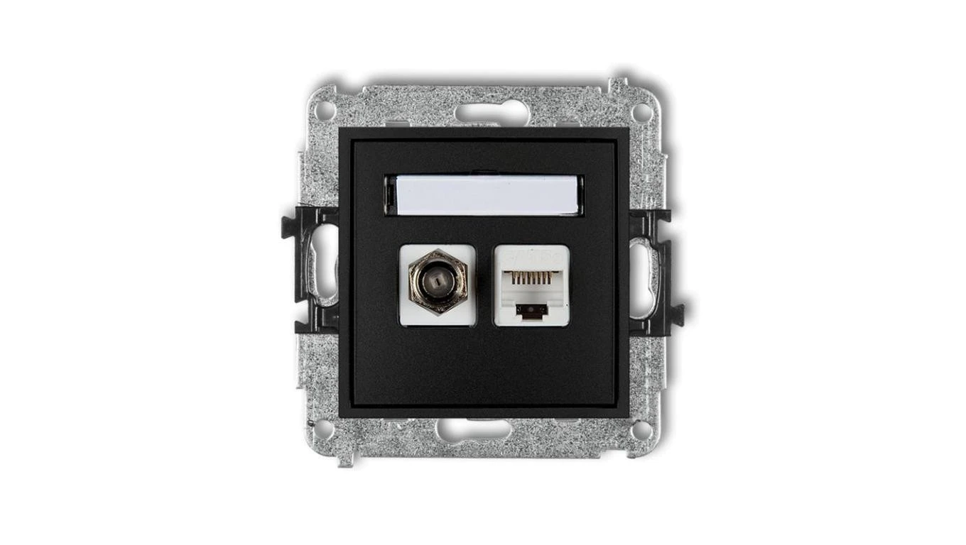 MINI Gniazdo antenowe typu F (SAT) + gniazda komputerowe 1xRJ45 kat. 5e czarny mat 12MGFK-1