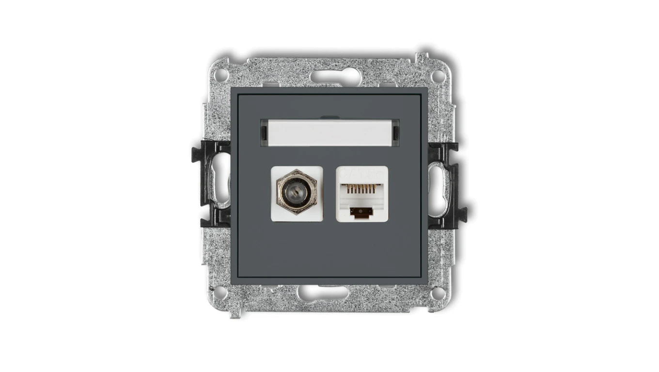 MINI Gniazdo antenowe typu F (SAT) + gniazda komputerowe 1xRJ45 kat. 5e grafitowy mat 28MGFK-1