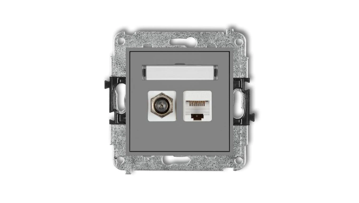 MINI Gniazdo antenowe typu F (SAT) + gniazda komputerowe 1xRJ45 kat. 5e szary mat 27MGFK-1