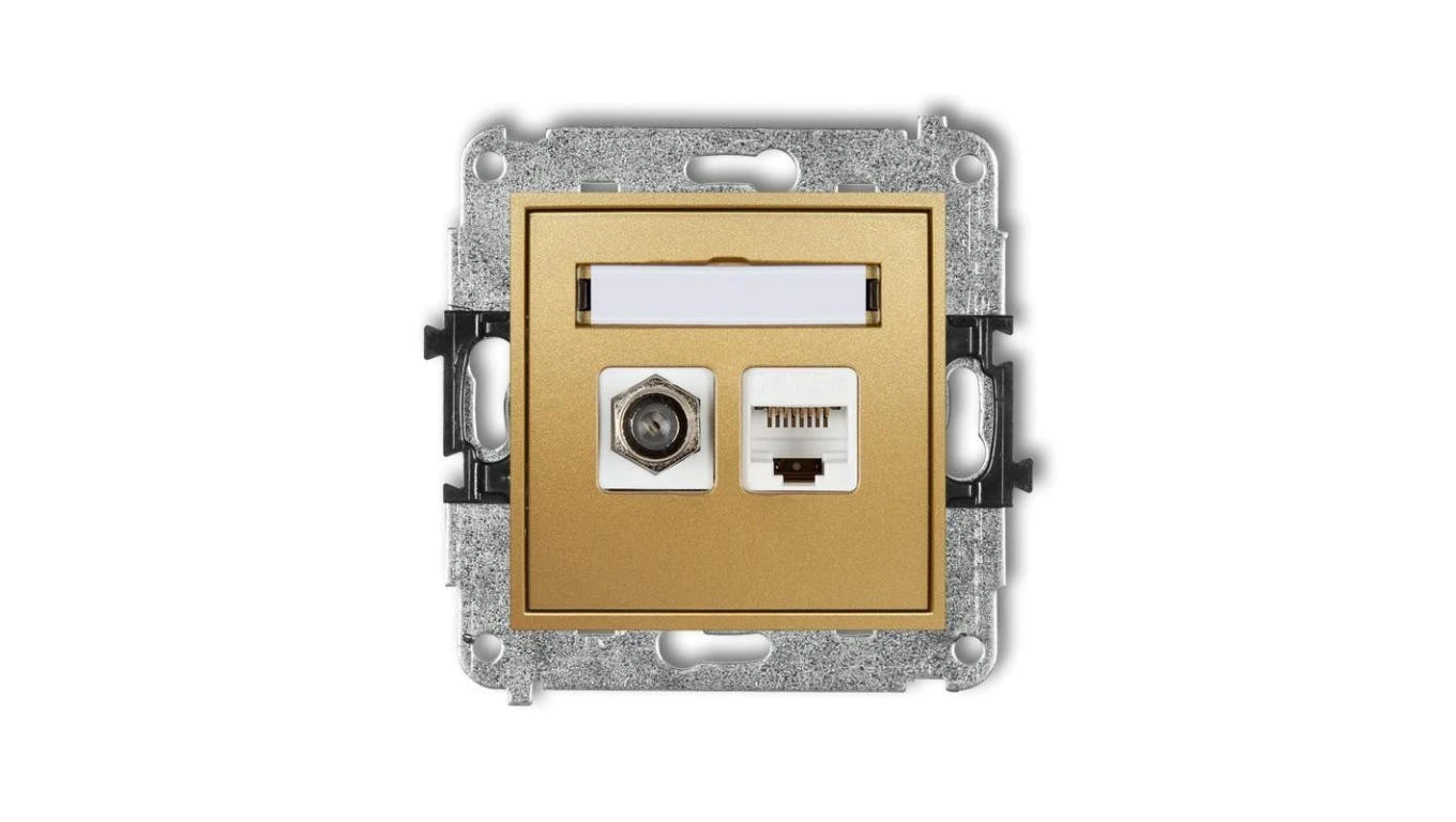 MINI Gniazdo antenowe typu F (SAT) + gniazda komputerowe 1xRJ45 kat. 5e złoty 29MGFK-1