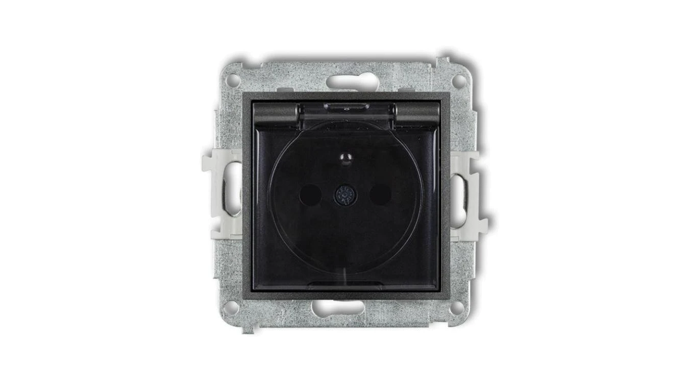 MINI Gniazdo bryzgoszczelne z/u IP44 z przesłonami klapka dymna grafitowe 11MGPB-1zdp